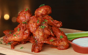 Buffalo wings exploding with spicy flavor. Served with cool blue cheese sauce and fresh celery sticks.