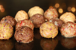 | ClassicClassic Beef, Pork Pimiento, Smoky Chicken, Swedish Pork & Beef or Tofu-Mushroom Veggieball | PremiumSpiced Lamb, Chunky Shrimp or Cheesy Stuffed Beefballs |