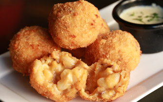 Crispy macaroni & cheese balls with fresh mushrooms and the flavors of exotic white truffles. Served with creamy Parmesan béchamel sauce for dipping.