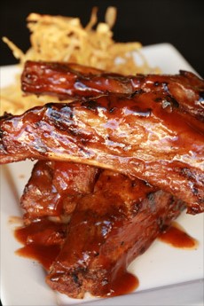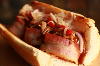 baguette bread w/ pulled pork and Smoked BBQ Sauce.